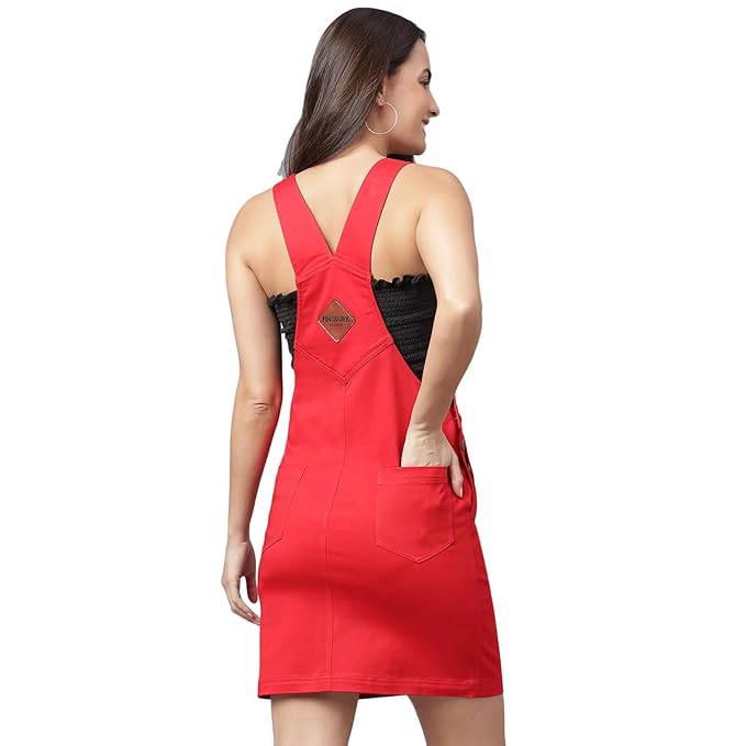 FINSBURY LONDON® Women's Dungaree Dress - Crimson Red